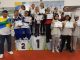 Selanjutnya 3 atlet di nomor Ritmik (Azka, Zahro dan Vanes) dengan pelatih Ida Widaningsih dan 1 offisial Supriyanto.