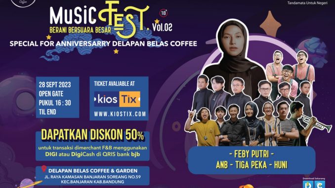 Bandung, Inbewara – bank bjb mendukung kegiatan tahunan yang dilaksanakan oleh Delapan Belas Coffee sebagai salah satu bentuk loyalty kepada merchant bank bjb yaitu Delapan Belas Coffee & Music Festival Vol. 2.